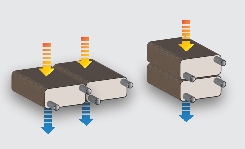 Alternatively, they can be placed on opposite sides for counterflow or