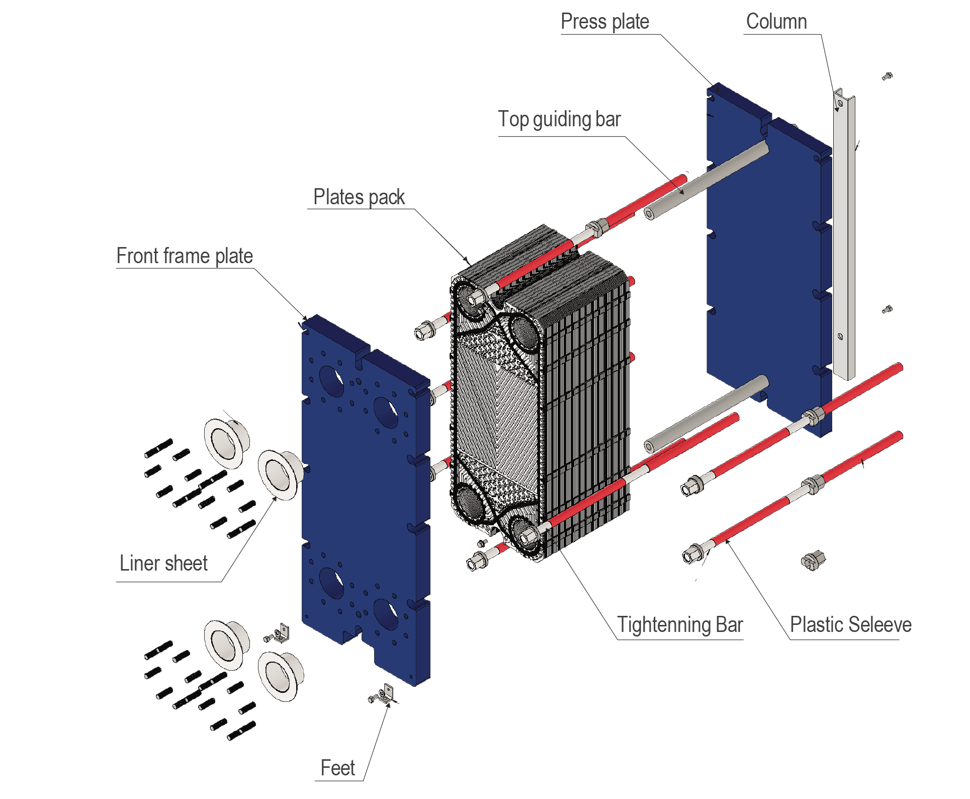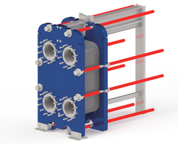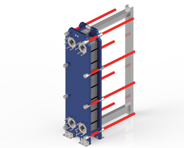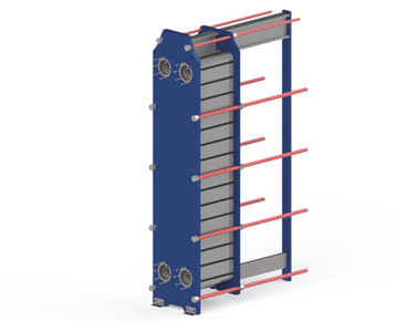 A Gasketed Plate Heat Exchanger (PHE) is a compact and highly efficient heat transfer device consist- ing of multiple thin, corrugated plates that are assembled within a frame. Gaskets between the plates create sealed flow channels, enabling effective heat exchange between two fluids while preventing mixing. It is widely used in industries such as HVAC, food processing, chemical processing, and power generation.