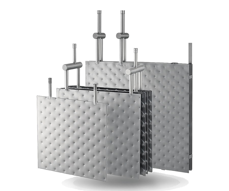 Pillow Plates are a type of heat exchanger plate made by welding two thin metal sheets together—typically using laser welding in a custom pattern—and then inflating them with high pressure to create a pillow-shaped, dimpled structure. This forms internal flow channels and an enlarged surface area for efficient heat transfer.