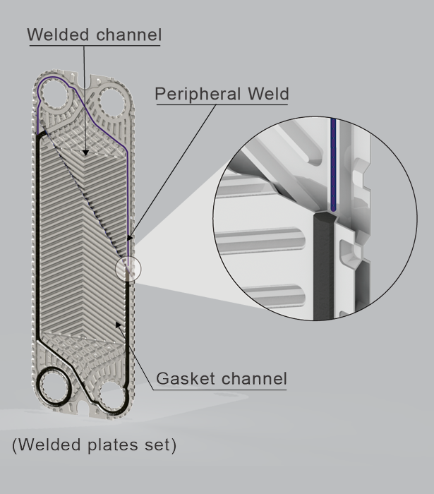 A semi-welded PHE is a specialized type of plate heat exchanger (PHE) that features pairs of welded plates that form sealed channels for one fluid, while the other fluid flows between these welded pairs and is sealed with gaskets.